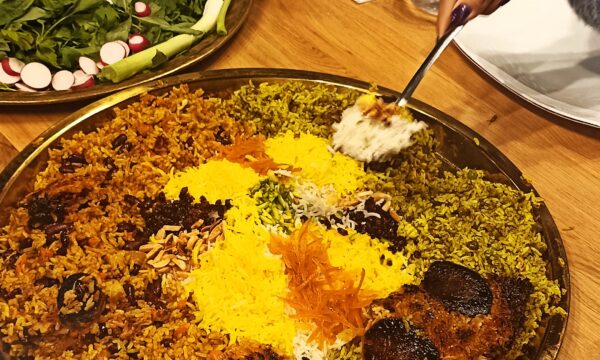 צילום נעמי גולן אני במסעדת שחרזאד ברחובות ליד שולחן הקינוחים בשלטון האימים הדיקטטורי של האייתולות ...