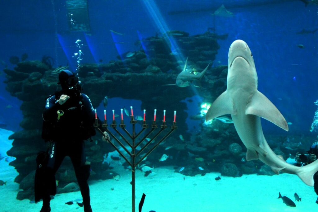 הדלקת חנוכיה בבריכת הכרישים במצפה התת ימי באילת