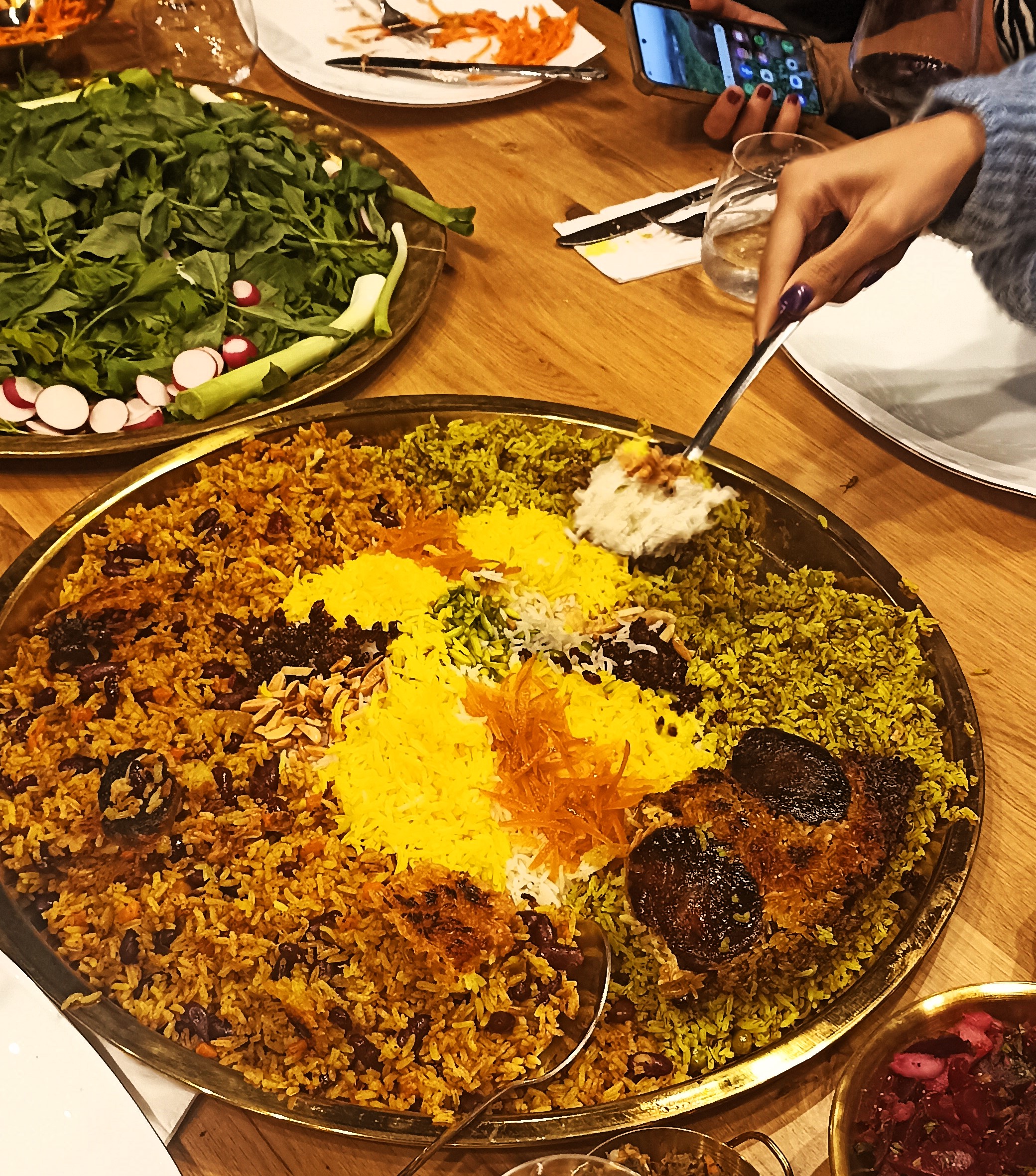 צילום נעמי גולן אני במסעדת שחרזאד ברחובות ליד שולחן הקינוחים בשלטון האימים הדיקטטורי של האייתולות באיראן, ובמיוחד נגד אתרי ייצור הנשק הגרעיני שלהם, מתנהלת מלחמה בכמה חזיתות: סנקציות כלכליות, הפצצות של חיל האוויר הישראלי, קמפיין איומים של נשיא ארה"ב טראמפ, קמפיין ההסברה של ראש הממשלה בנימין נתניהו, תשדירים וסרטונים סאטיריים של אמנים בקהילות יוצאי איראן…